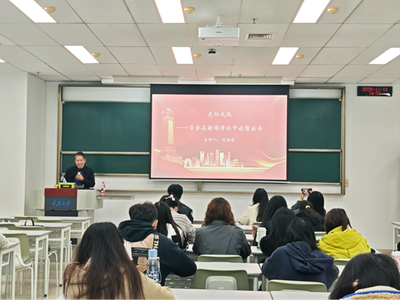 最后,刘教授总结道,在信息海量涌动的时代,新闻评论不仅是公共舆论的重要组成部分,更是青年认识社会、提升认知的重要路径。同学们应学会以理性看待热点、以批判性思维解析评论、以建设性态度参与讨论,在探索社会逻辑的过程中不断拓宽认知边界,实现思维上的成熟与成长。